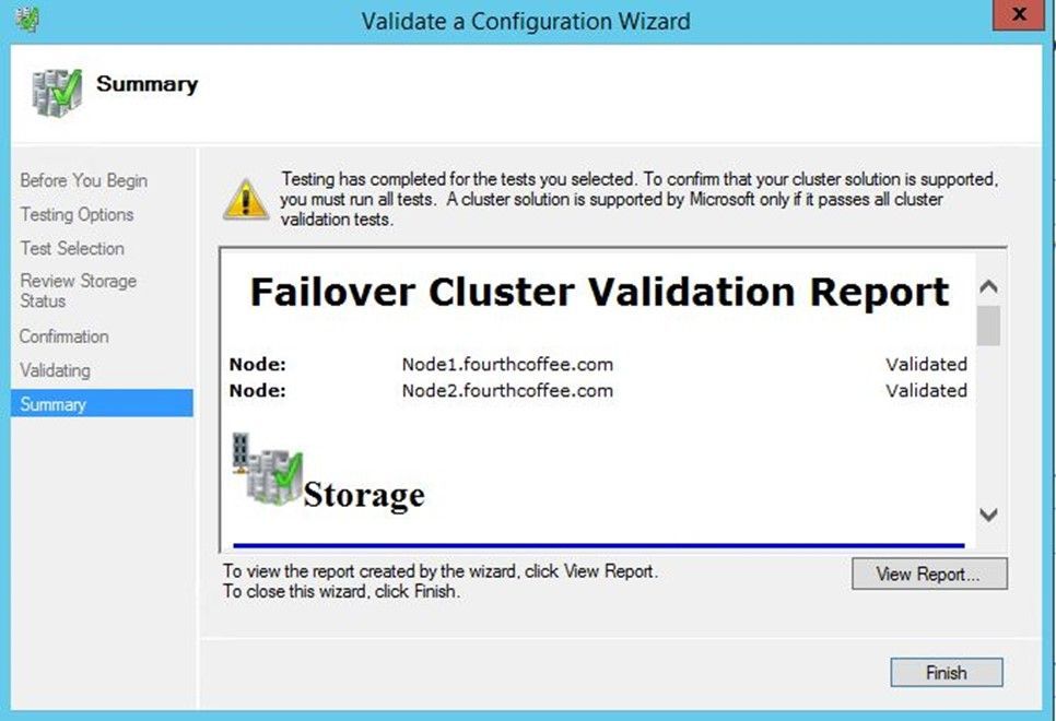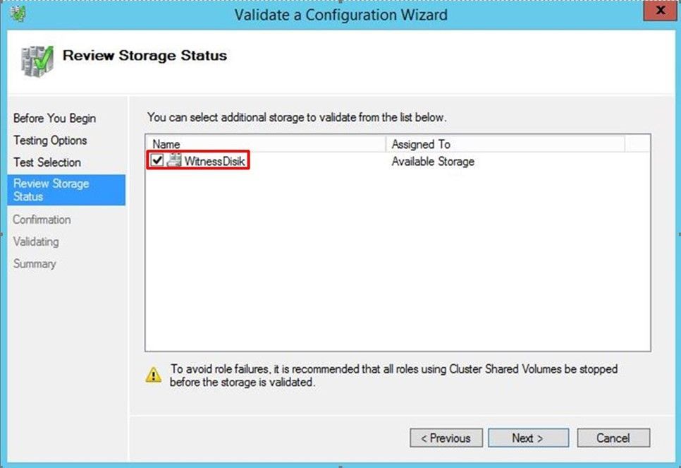 - We just removed and replaced the Witness Disk in a functioning cluster with no down time, reboots, failovers, restarts of the cluster service, etc. We've given ourselves the opportunity to test the entire storage stack, OS file system through the HBAs and all the way down to a specific physical disk, with the testing capabilities of the Failover Cluster Validation Wizard.
