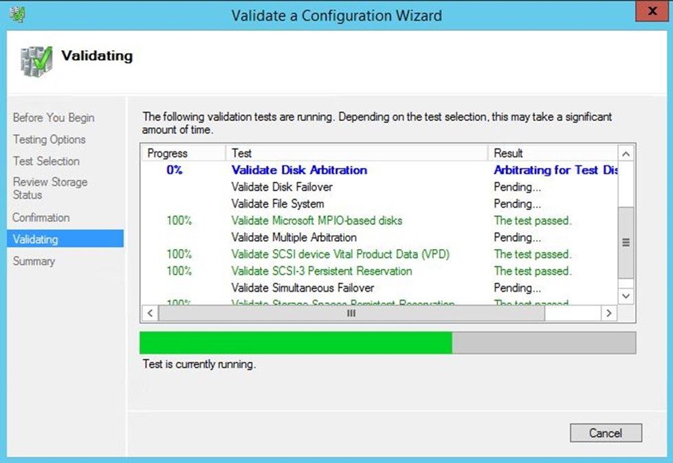 What I want to talk about today is one part of the Validation Report and that is storage testing. For the Validation Wizard to test your clustered storage it must have storage to test and more importantly, storage that is in an offline state. For example, if you have a SQL cluster the odds are you will have to take your SQL Service offline to test any associated storage hardware. The average cluster generally has no free storage to test.