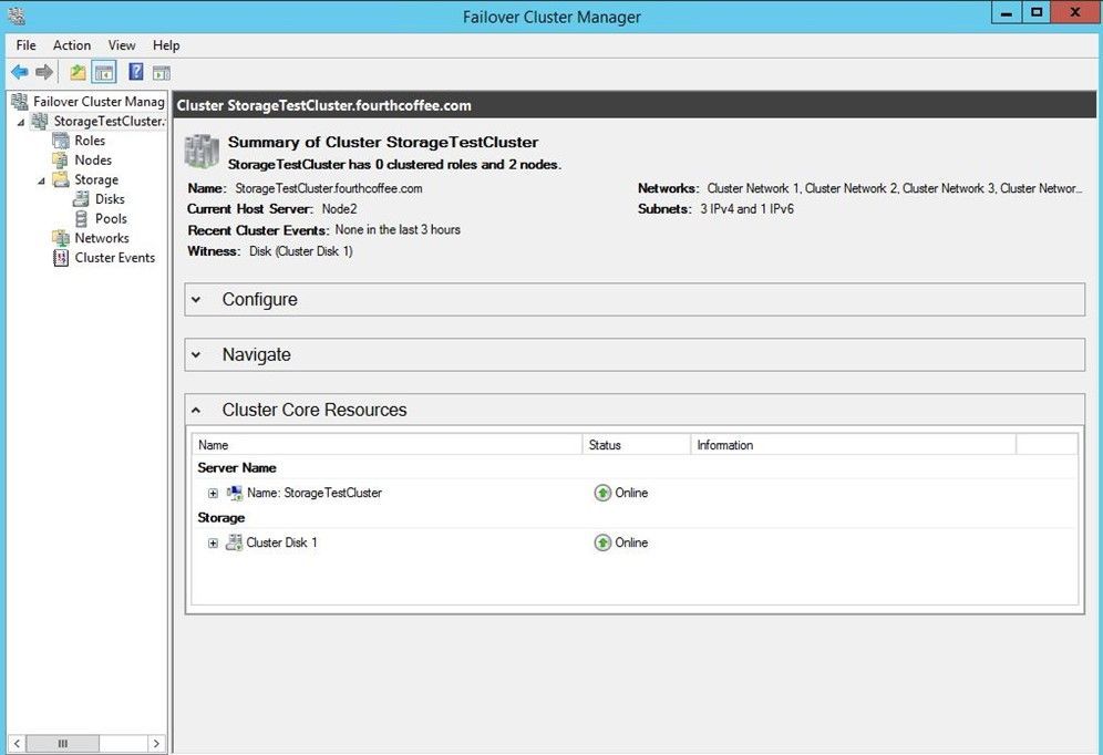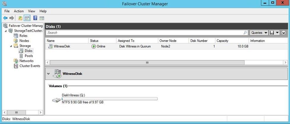 STEP 18: Verify the Disk Witness has been configured successfully via the Storage/Disks option in the navigation pane