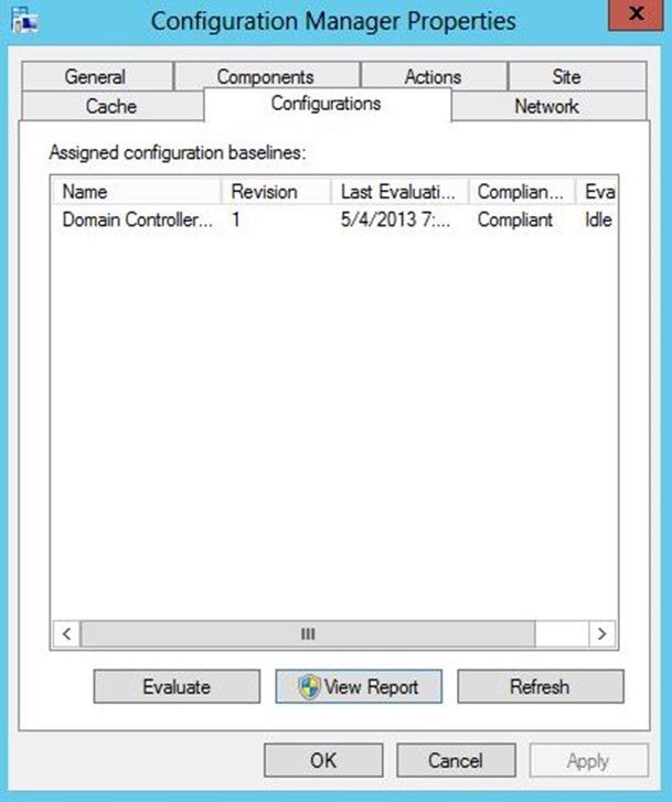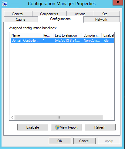 To scan the Compliance state locally on a system, open up Control Panel >> Configuration Manager >> Configurations tab