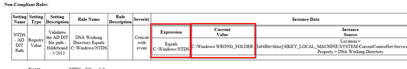- I only screen-shot'd the NTDS path failure but the GC non-compliancy was there, too