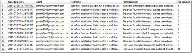 The descriptions on these alerts will give details about the workflow that failed and the script or WMI error. It’s important to review these alerts to determine if there is:
