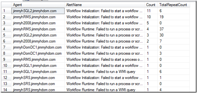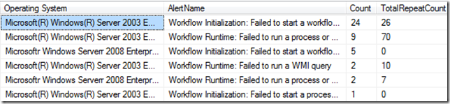 I regularly see customers getting a lot of alerts indicating that workflows have failed to run a script of WMI query…the alert name is usually one of the following: