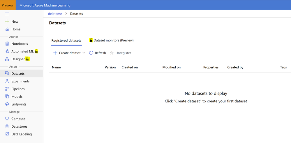 Of course, you can do this all through the Azure ML Studio (ml.azure.com) if you run the Enterprise features. Oops, there are locks beside them!