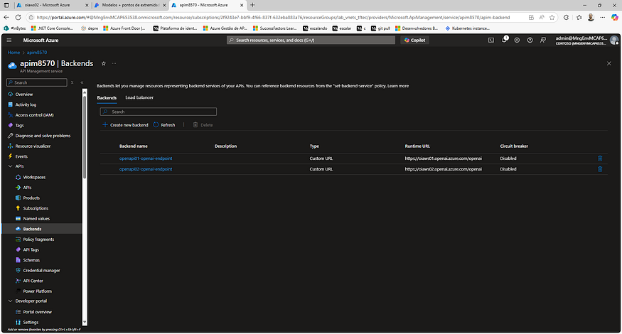 1. Criando os Backends para Azure OpenAI