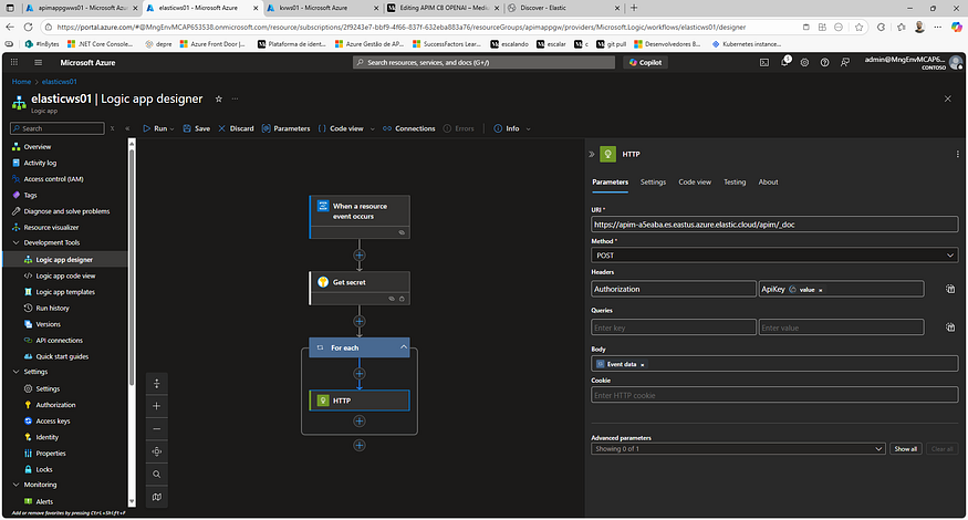 7. Export Events com Logic Apps → Elastic Observability