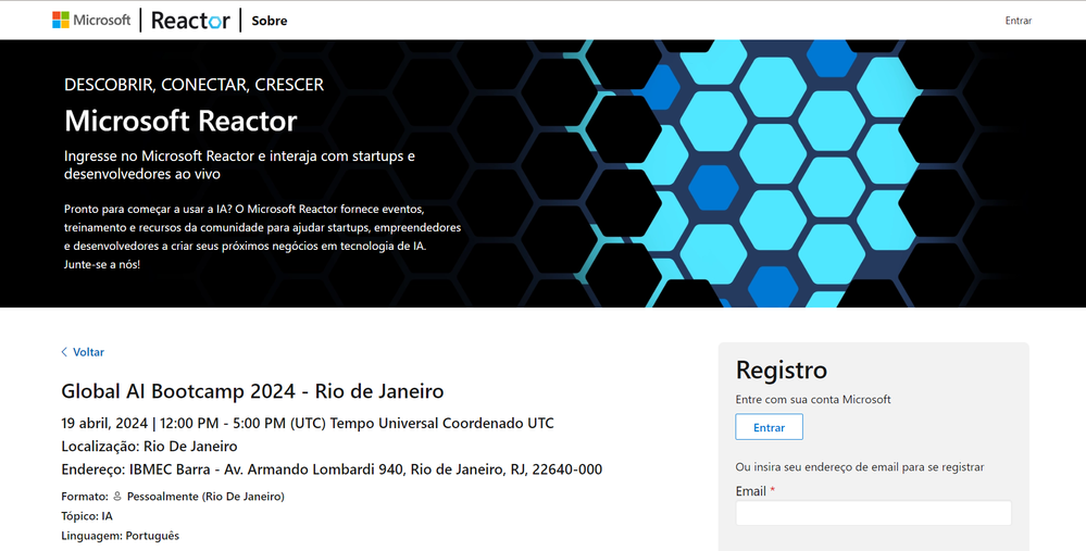 Em 2024, o Global AI Bootcamp será realizado no Rio de Janeiro! E, será um evento presencial e gratuito. Contará com: