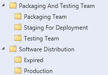4) Apart from the roles and scopes shown above, we also created some folders to organize the objects in the console like shown below. Please note that Folders are not controlled by RBA. If you have permissions to create the object you can create them in any folder and no restriction will be applied. In our environment Packagers create the objects in “Packaging Team” folder and move it to “Testing Team” when it is ready for the test. Testing team moves the object to “Staging for Deployment” folder if the object passes testing but if the object fails testing it will be moved back to Packaging team. Deployment Team moves the object to “Production” folder before deploying it to production collections.
