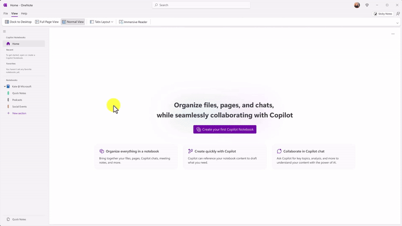 Copilot Notebooks in Microsoft 365 Copilot is your AI-powered workspace to stay focused on what matters most. Bring together Copilot chats, Microsoft 365 files, OneNote pages, meeting notes, and links—all in one place. Listen to an audio overview hosted by two voices. Ask questions and Copilot will analyze your notebook content, surface insights, and help you draft new content. Copilot Notebooks available now at microsoft365.com/copilot. (A Microsoft 365 Copilot license is required.)