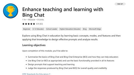 Last week, we launched a new Microsoft Learn course called Enhance teaching and learning with Bing Chat. This course is designed for educators to explore using Bing Chat in education by learning basi...