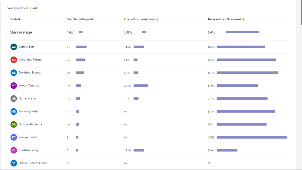Take a more detailed look at the Search Coach features below! To get started using Search Coach in your class or district, or if you’d like to join the Preview Team in the Microsoft Education Tenant and try Search Coach there, fill out this short form.