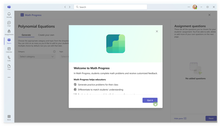 Today, we’re pleased to announce Math Progress, a new Learning Accelerator, is now generally available in Microsoft Teams for Education for all supported languages.