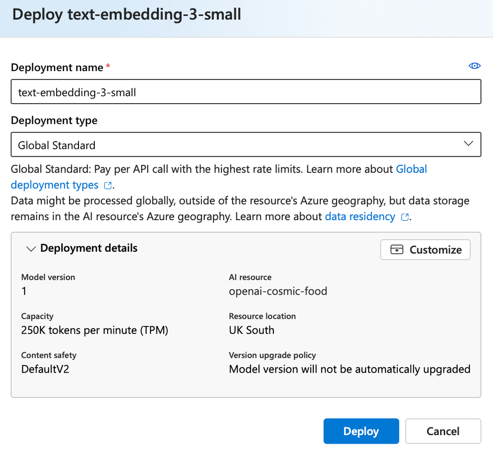 - Create an embeddings and a chat deployment in Microsoft Foundry Azure OpenAI portal.