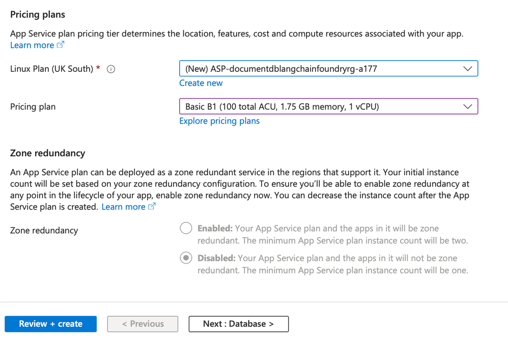| Location | Select a region close to you for the best response time. For example, Select UK South. |