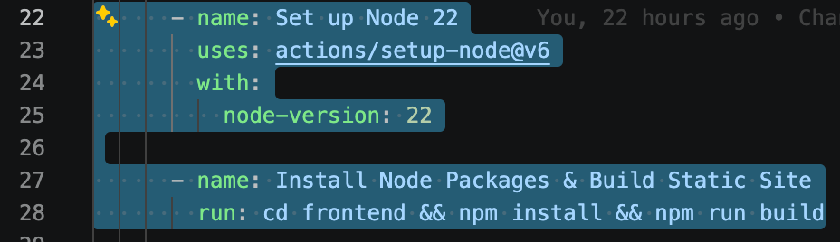 6. Add this section to Install Node 22 and build the static frontend.