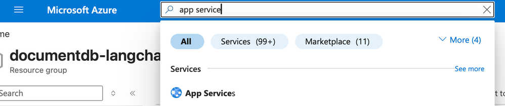 1. Type app service in the search bar at the top of the portal page and select App Services from the available options.