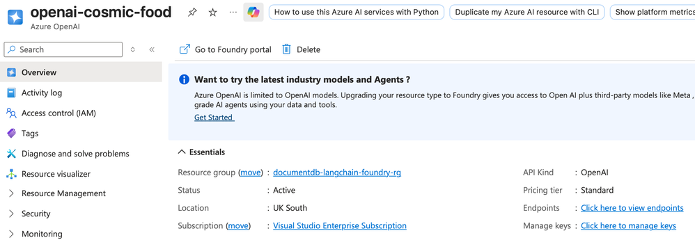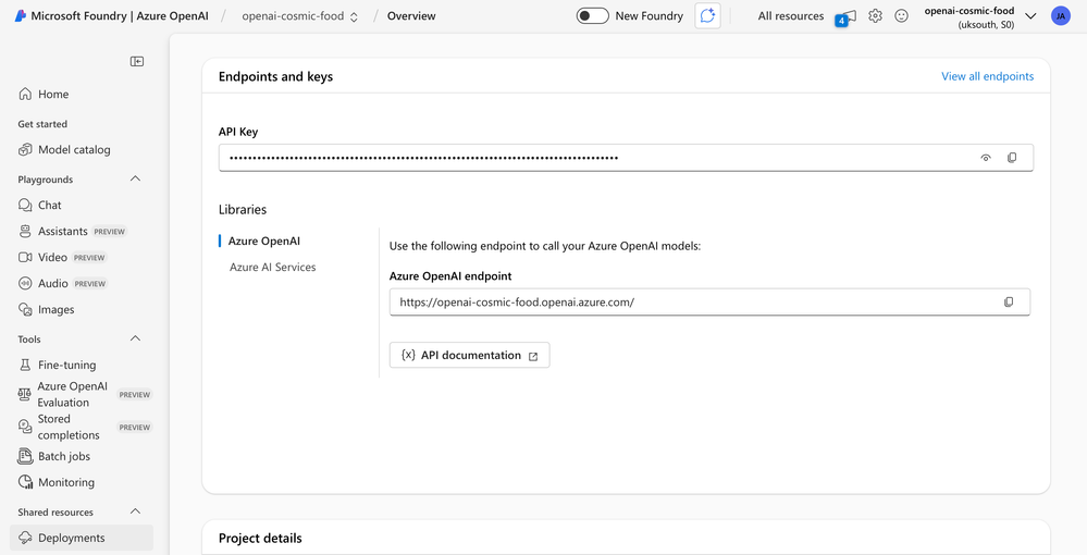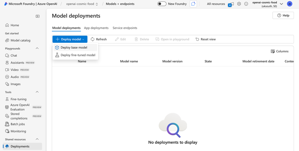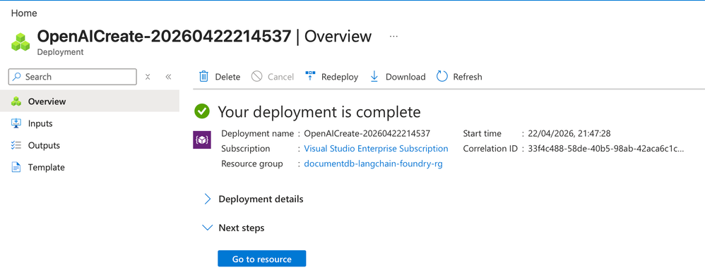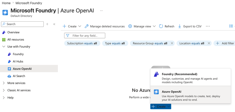 - Create a Microsoft Foundry Azure OpenAI resource.