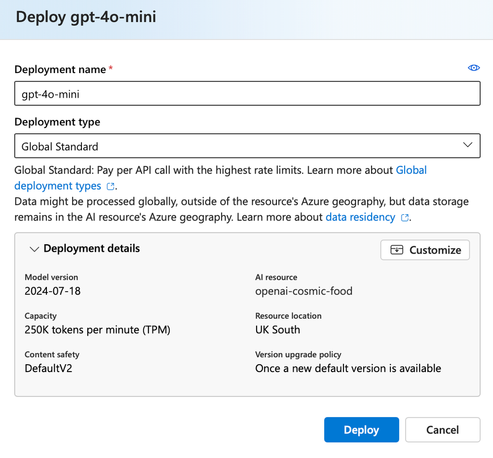 7. Review selected options then select Deploy.