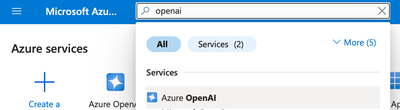 1. Type openai in the search bar at the top of the portal page and select Azure OpenAI from the available options.