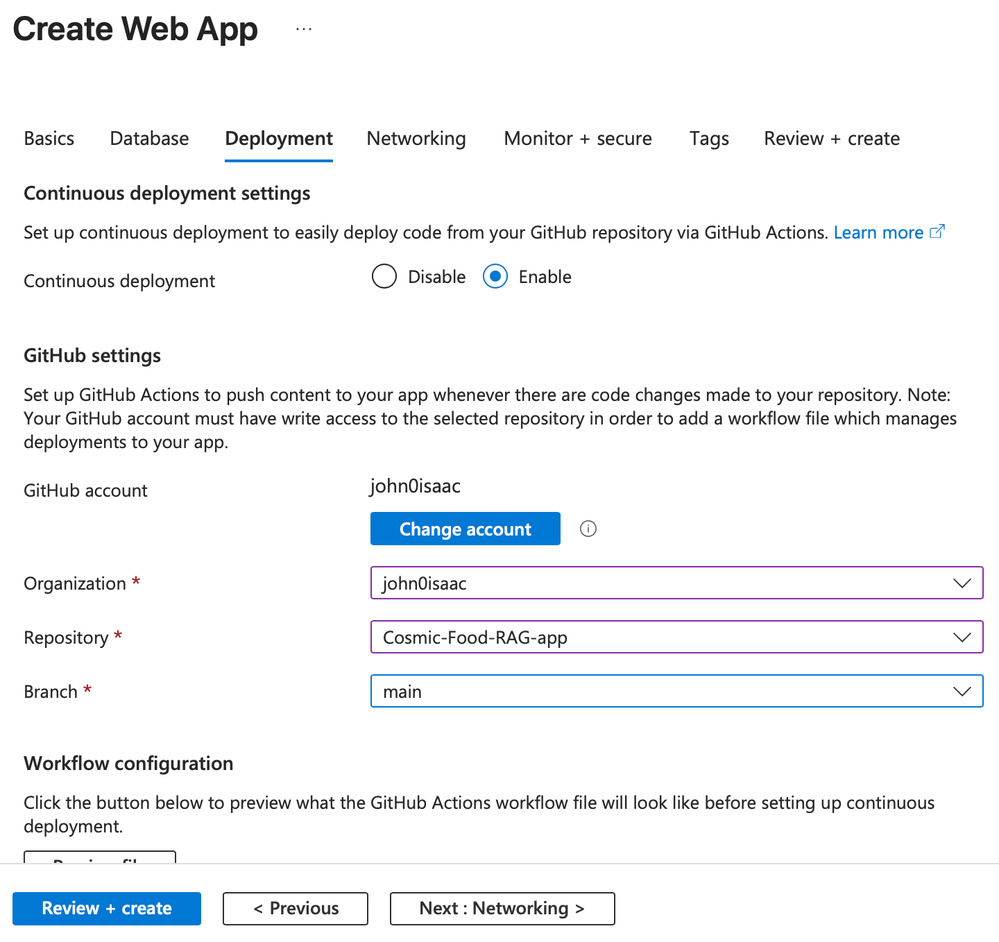 - Configure the workflow to deploy your application from GitHub.