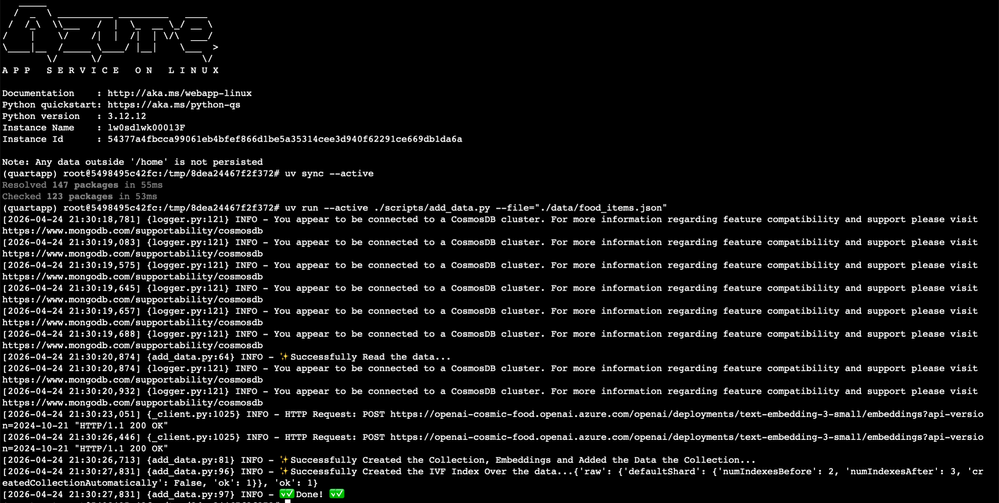 name: Build and deploy Python app to Azure Web App - cosmic-food-rag