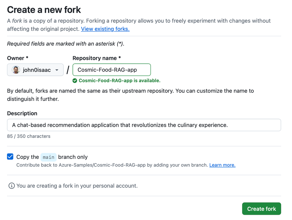 - Fork the sample repository on GitHub.