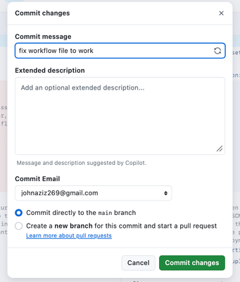 7. Select Commit changes, and review your commit message and description. Select Commit changes.