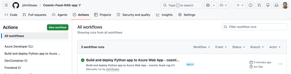 8. Select Actions to review the workflow run status.