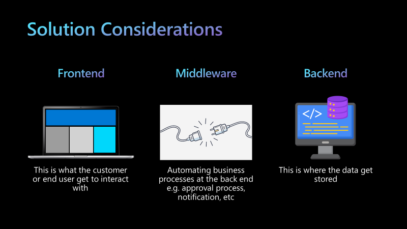 Before you build an application, you should have some thought and break down what you want to do before building. This process is often called "Solution Architecting". While we will not be taking a lot of time doing this, I would like to introduce you to the basics of it.