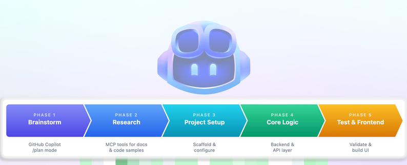 5 Phases - Brainstorm, Research, Project Setup, Core Logic, Test & FrontendHere is how I think about the stages:
