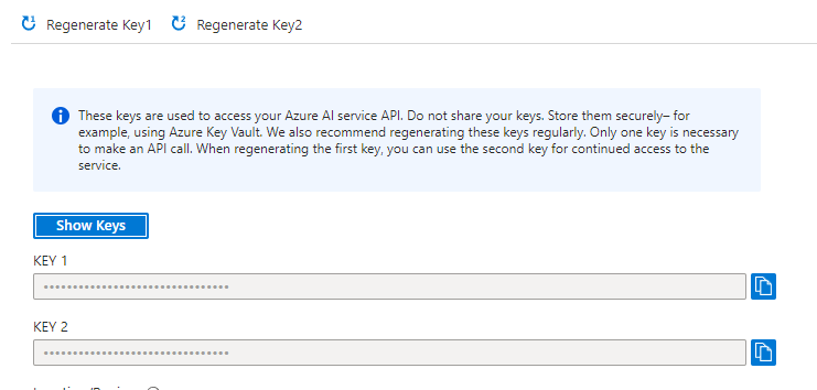 - Now we are going to fetch our API keys. To do this, head over to left tab and click Keys and Endpoint.