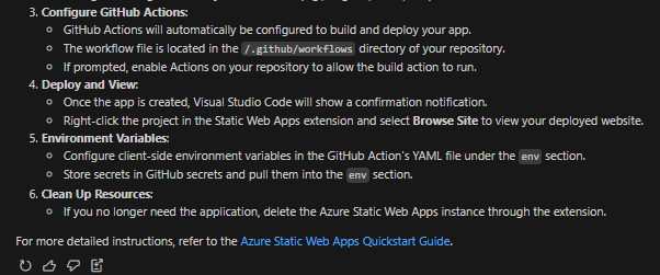 You will receive a set of instructions to deploy your website. To make it simpler, you can ask Copilot for a more detailed guide.