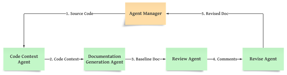 - Revise Agent modifies the baseline documentation according to the suggestions and returns the improved documentation to Agent Manager.