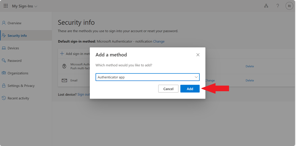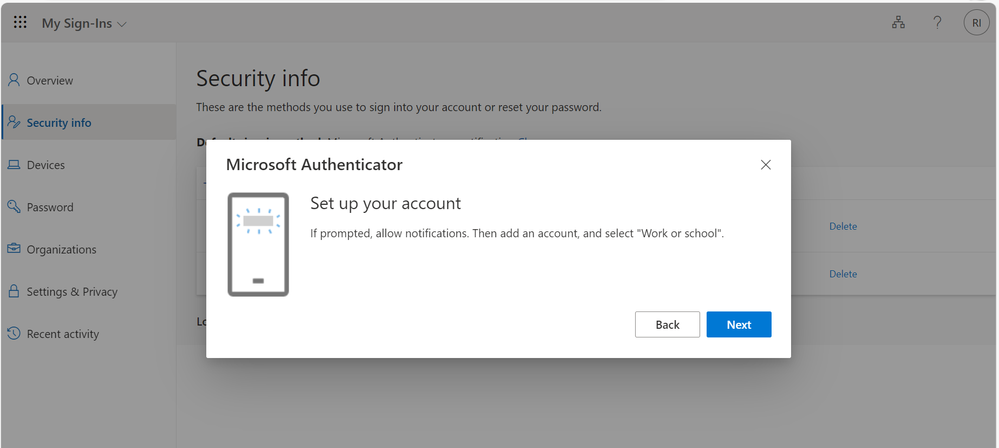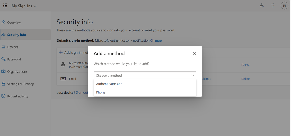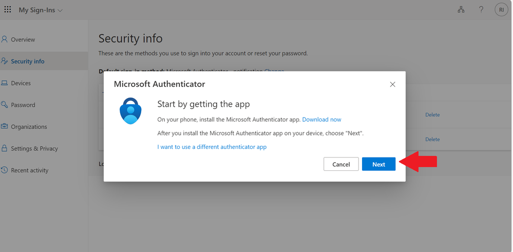 Select Microsoft Authenticator