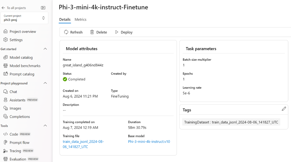 - After successful evaluation, you can deploy the fine-tuned model directly from Azure AI Foundry.