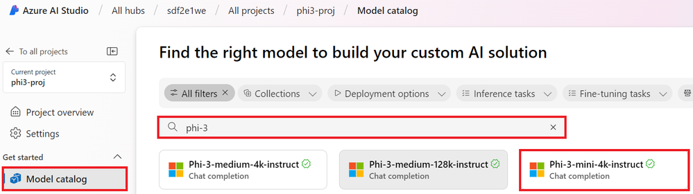 - Choose Phi-3 or another small language model from the available options.