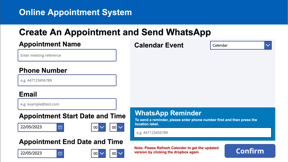 Both these connectors have been used in our sample power app where we a GP or a doctor would interact with the UI to send a link to a patient who cannot physically attend by setting a time and date, then sending the link to the associated number for the patient. The doctor can then follow up by sending the link through WhatsApp as well as a reminder of the time and date of the patient’s appointment. The power app also uses an existing outlook connector which adds the meeting to the doctor’s calendar (which also means that he cannot have conflicting appointment times).