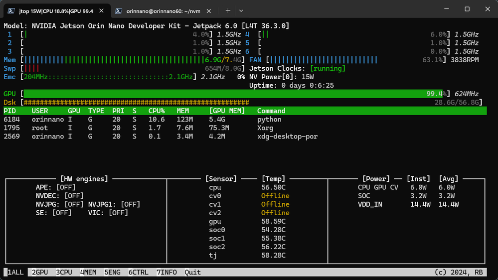 We can use Jtop to monitor resource usage: