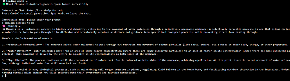 Phi-4-mini provides a thorough, well-structured explanation! It starts with the basic definition, explains the process in biological systems, gives real-world examples (plant cells, human blood cells). The response is detailed yet accessible.
