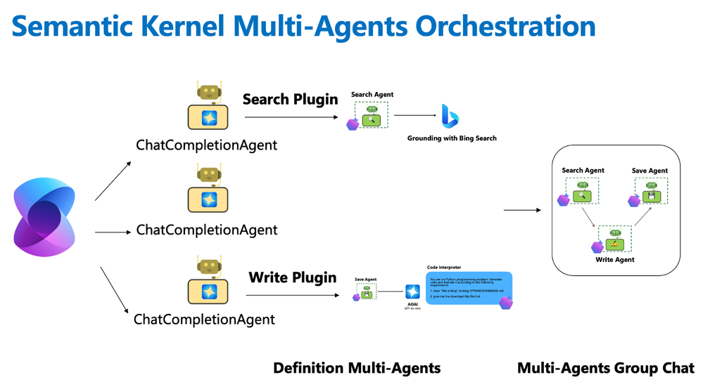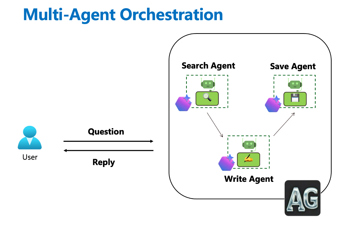 The following introduces a blog writing scenario. This scenario involves three AI agents: one for content collection, another for writing assistance, and a third for content storage and management. These agents can be seamlessly orchestrated using AutoGen or Semantic Kernel.