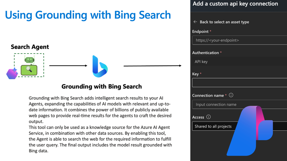 The content collection agent mainly searches for the content of the blog outline through search engines to add more detailed content to the blog. Azure AI Agent Service provides Grounding with Bing service for extension, and you can easily access Bing search.