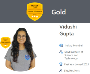 Hello, I am Vidushi Gupta, a Gold Microsoft Learn Student Ambassador from India. I am an undergraduate studying...