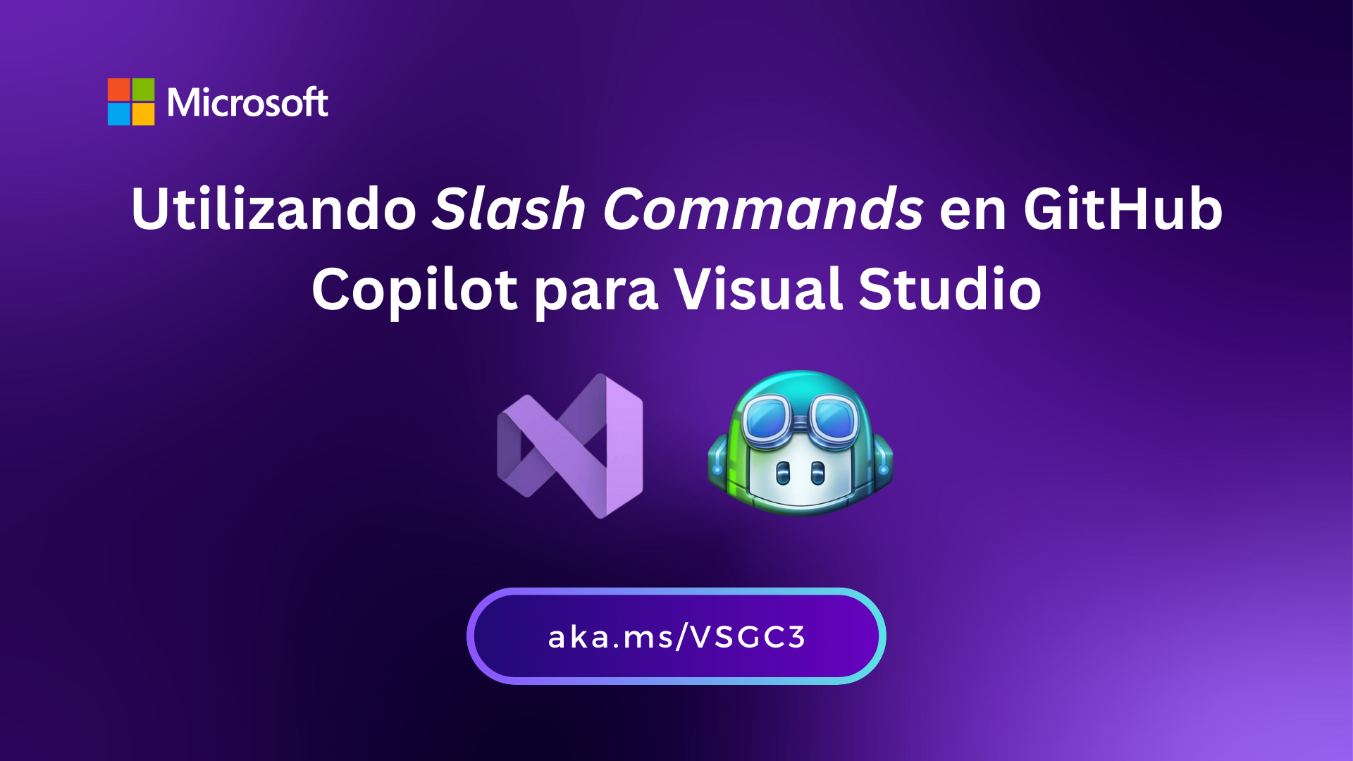 En este blog, demostraremos más información de los comandos de barra diagonal (slash commands). Como los llama Bruno Capuano en un video, "pequeños hechizos mágicos"; en otras palabras, al escribir una barra diagonal (/) en un símbolo del sistema de GitHub Copilot, se abre una opción en la que puede elegir algunos comandos que tendrán una acción predefinida.