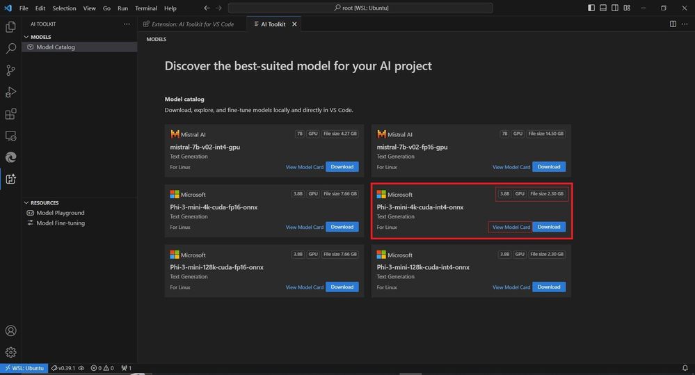 Also, two fresh sections are shown under AI-toolkit namely Models and Resources.