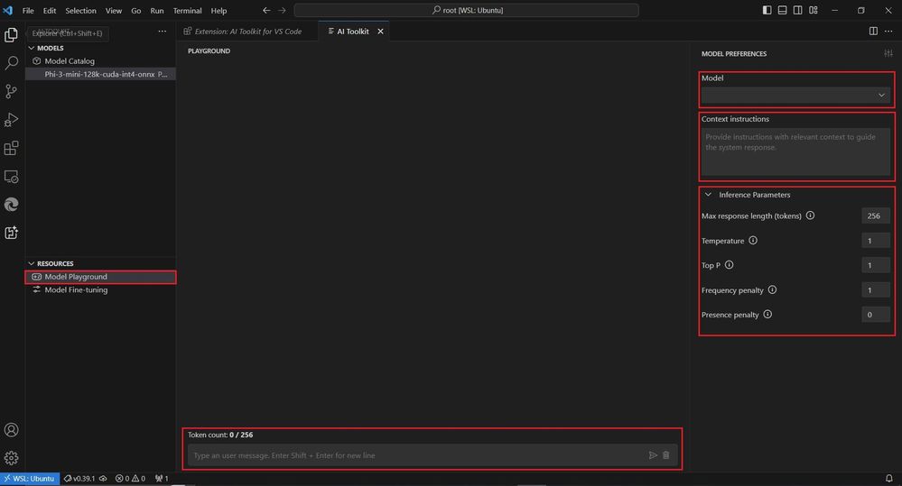 For local run on Windows + WSL, WSL Ubuntu distro 18.4 or greater should be installed and is set to default prior to using AI Toolkit. Learn more how to install Windows subsystem for Linux and changing default distribution or I have explained it step-wise in one of the previous blog where I have demonstrated the installation of windows AI studio. You can find it here. Steps of installation of WSL remains the same as explained in that blog. Windows AI Studio is deprecated and is now rebranded as AI Toolkit. For the latest documentation and to download and use the AI Toolkit, please visit the GitHub page.