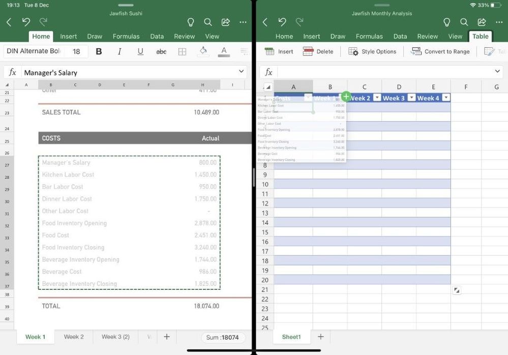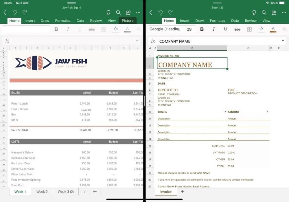 You can now open two Excel workbooks side-by-side and take advantage of the larger screen of your iPad.