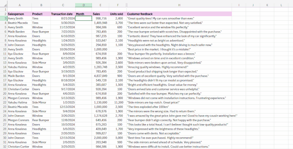 We’ve already made formula writing easier with formula completion, which proactively suggests and autocompletes formulas as you type. Now, we’re introducing an additional on-grid Copilot tool that takes it a step further: With this new capability, you can simply describe what you need, and Copilot will create the formula for you. This means no more struggling to remember complex syntax, and faster and more natural interactions with your data, especially if you’re new to Excel – plus, a helpful alternative when formula completion doesn’t return the right suggestions or when you prefer typing in your own words. Together, these tools make formula writing faster, easier, and more intuitive, so you can focus on insights, not syntax.