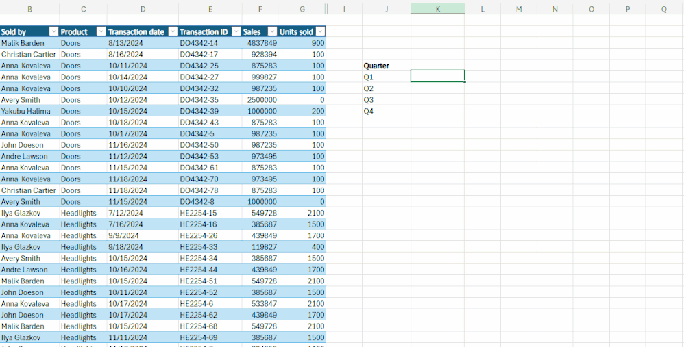 - Calculate the total sales for each quarter - even when the sales table doesn't include the quarter, only the date.