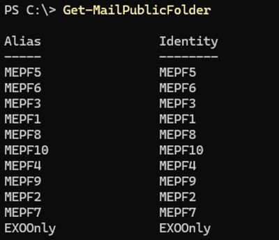 Next, use Get-MailPublicFolder command check if Mail enabled public folders are present: