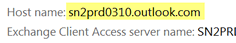 Screenshot: Retrieving the Client Access server name from POP, IMAP and SMTP Access settings in Outlook Web App